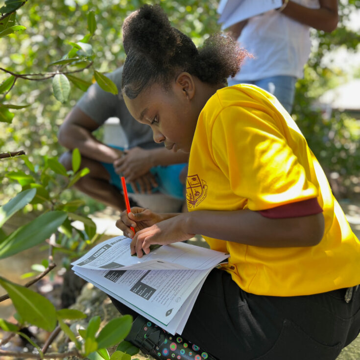 As part of these programs, we developed a Mangrove Ecology Curriculum designed to introduce students to the importance of mangroves while incorporating STEAM education and place-based and project-based learning methodologies. The curriculum has been custom-tailored for each country and aligns with national educational standards. To ensure the curriculum is culturally and environmentally relevant, we work closely with in-country partners – such as the University of the West Indies Discovery Bay Marine Lab in Jamaica and Friends of the Environment in the Bahamas – to implement the program and ensure that students gain relevant and meaningful insights into their local ecosystems.