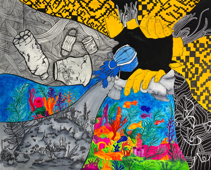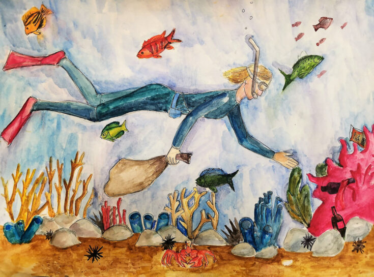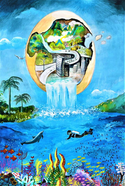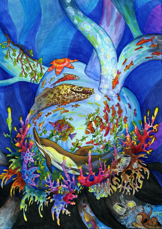“Life Meets Life” by Justin Ahn, Age 14, New Jersey, United States of America“The Irony” by Mia Boukarroum, Age 14, Connecticut, United States of America“It’s Okay” by Ya Ru Cao, Age 14, Florida, United States of America“Wastewater Management and Blue Carbon” by Viola Chang, Age 11, Canada“Saving Ocean Life” by Claire Chen, Age 13, Canada“Make a Little Wind, Make a Little Wave” by Dana Cho, Age 11, Singapore“Marine Protected Areas” by Twiggy Chen, Age 14, Canada“World in the Fishing Net” by Yuhan Cheng, Age 13, China“Satellite to Save Coral Life” by Kai-Chen Fan, Age 13, Taiwan“Undersea Glitch” by Zan Chao Hao, Age 13, China“United” by Pei Cen Hou, Age 13, Taiwan“The Mangrove of Hope” by Erin Huang, Age 12, Taiwan“Screaming” by Atina Hu, Age 14, New Zealand“Power of Coral” by Jason Kim, Age 14, Nevada, United States of America“Tipping Over” by Cara Lee, Age 14, Nevada, United States of America“The Masked Reef” by Jannie Mei Kool, Age 13, China“One Connection” by Jeongwoo Lee, Age 14, New Jersey, United States of America“Ocean’s Heart” by Alisiya Levchenko, Age 14, Russian Federation“Before It’s Too Late” by Olivia Hur, Age 13, California, United States of America“Underwater Rescuers” by Arina Nigmatullina, Age 14, Russian Federation“Tears of the Ocean” by Worramakha Nillawannapha, Age 14, Thailand“Coral Reefs are Suffering” by Yanjun Mao, Age 13, China“The Breakable Shell” by Ji Yoon Park, Age 12, Republic of Korea“Clean the Reef!” by Viara Pencheva, Age 12, Bulgaria“All Happy Beach (Fishers, Sea Creatures, and ‘Coral reefs’)” by Seyoon Park, Age 13, Republic of Korea “Coral Reef in the Bosom of their Mother” by Hyobin Pyo, Age 12, New Jersey, United States of America“Use LED Lights to Stimulate Coral Fluorescence” by Yeeun Yang, Age 13, Taiwan“Education Makes Environmental Protection a Mutual Believe Among All” by Shu Yen (Coco) Yeh, Age 14, Taiwan“Restoration” by Emily Zhang, Age 13, Canada“Garbage is the Enemy of Corals” by Валерия Матькова, Age 13, Russian Federation“The Redemption of Coral Reefs” by Yuetong Yan, Age 13, China“Mountain Stone Spirit” by Mingwenxi Zhang, Age 12, China“Ridge to Reef” by Zhaoge Wang, Age 13, China“Euphoria” by Celine Yang, Age 14, Republic of Korea