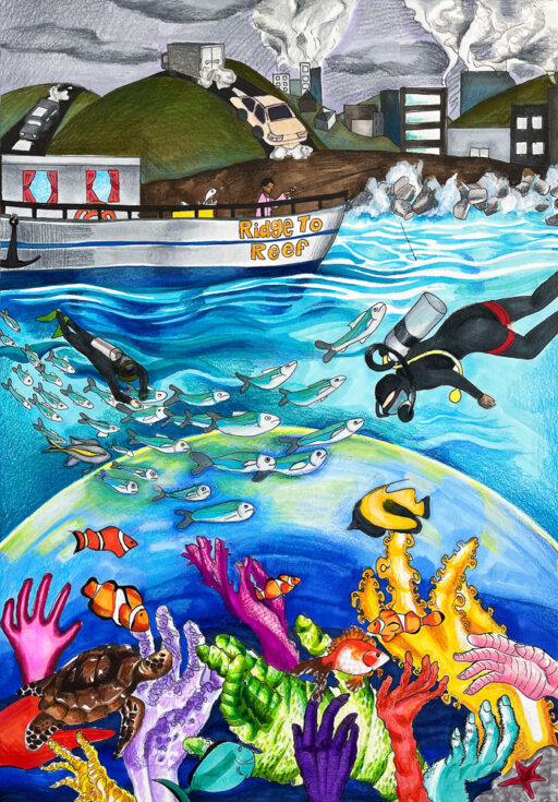 This international student art contest engages students in important marine science and conservation issues through art. The theme of this year’s challenge is “Ridge to Reef,” and students were asked to illustrate one or more actions that governments, non-profits, park managers, and indigenous communities can take to preserve coral reefs using a ridge to reef approach to conservation. They did not disappoint.