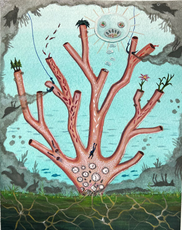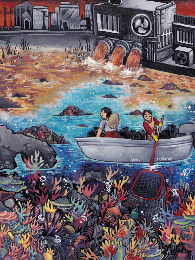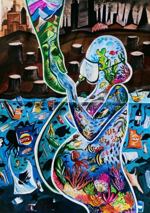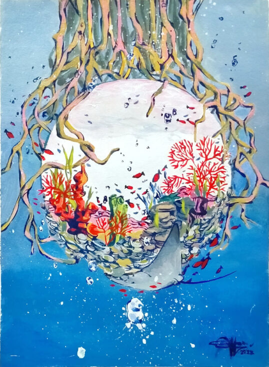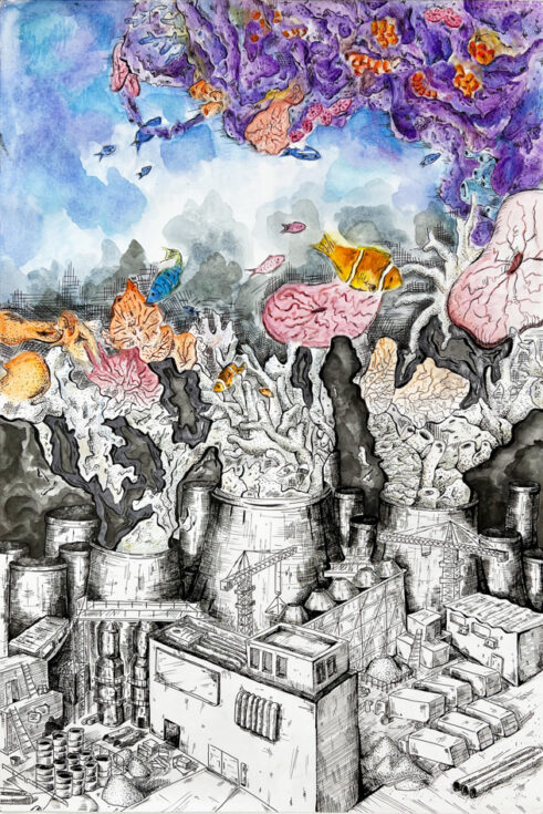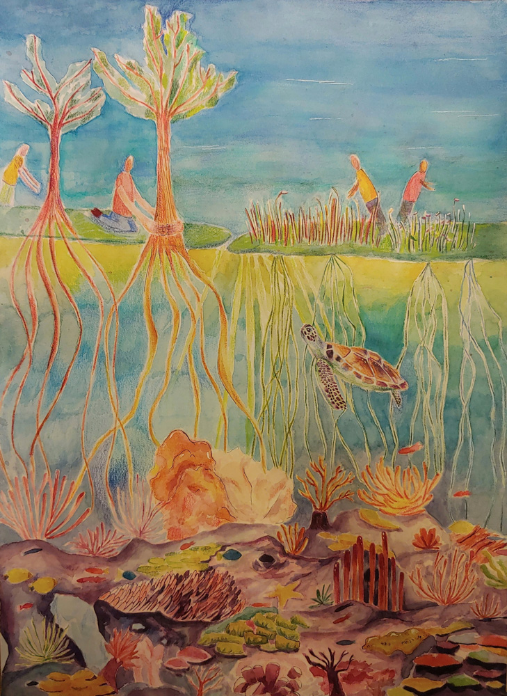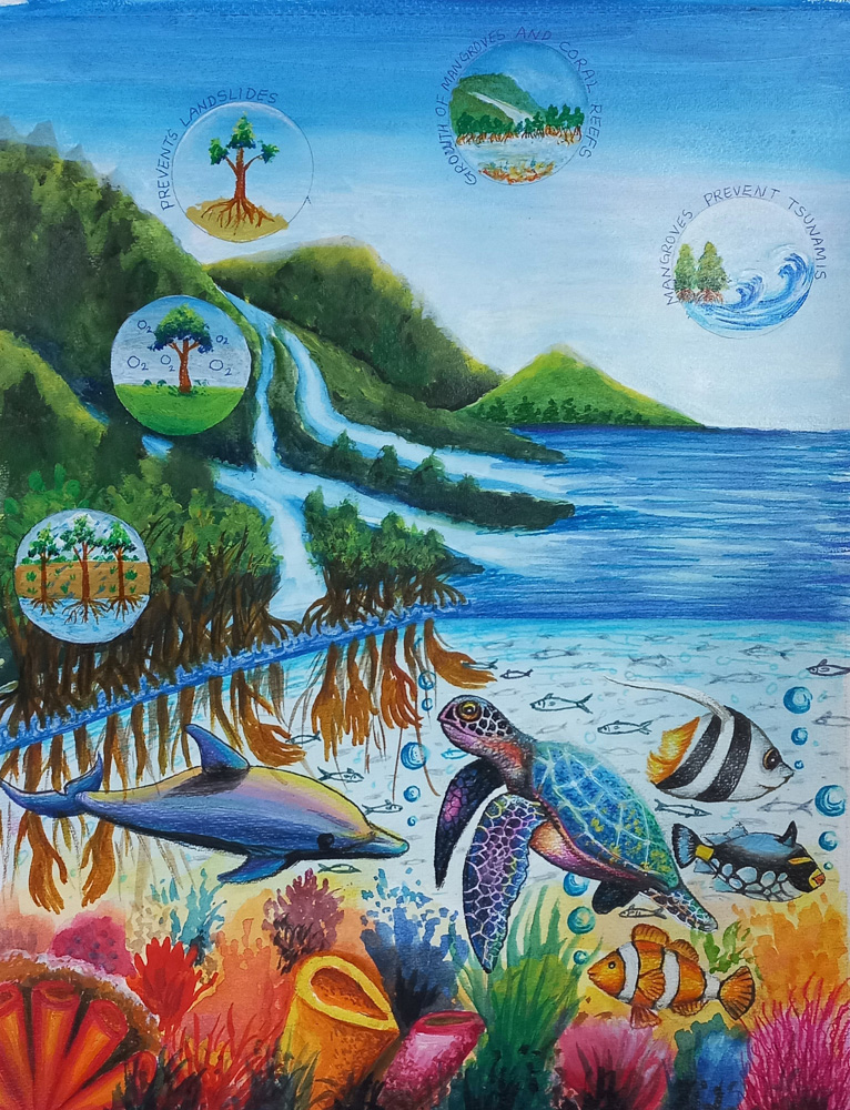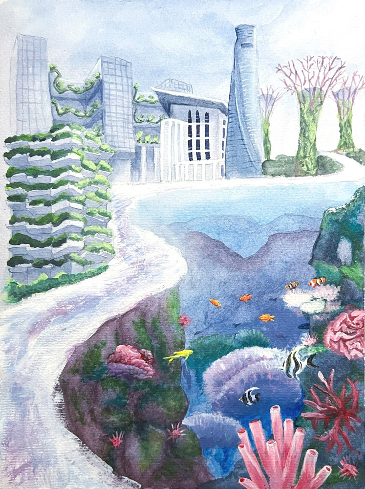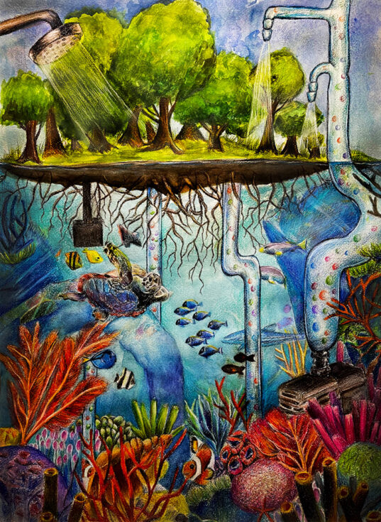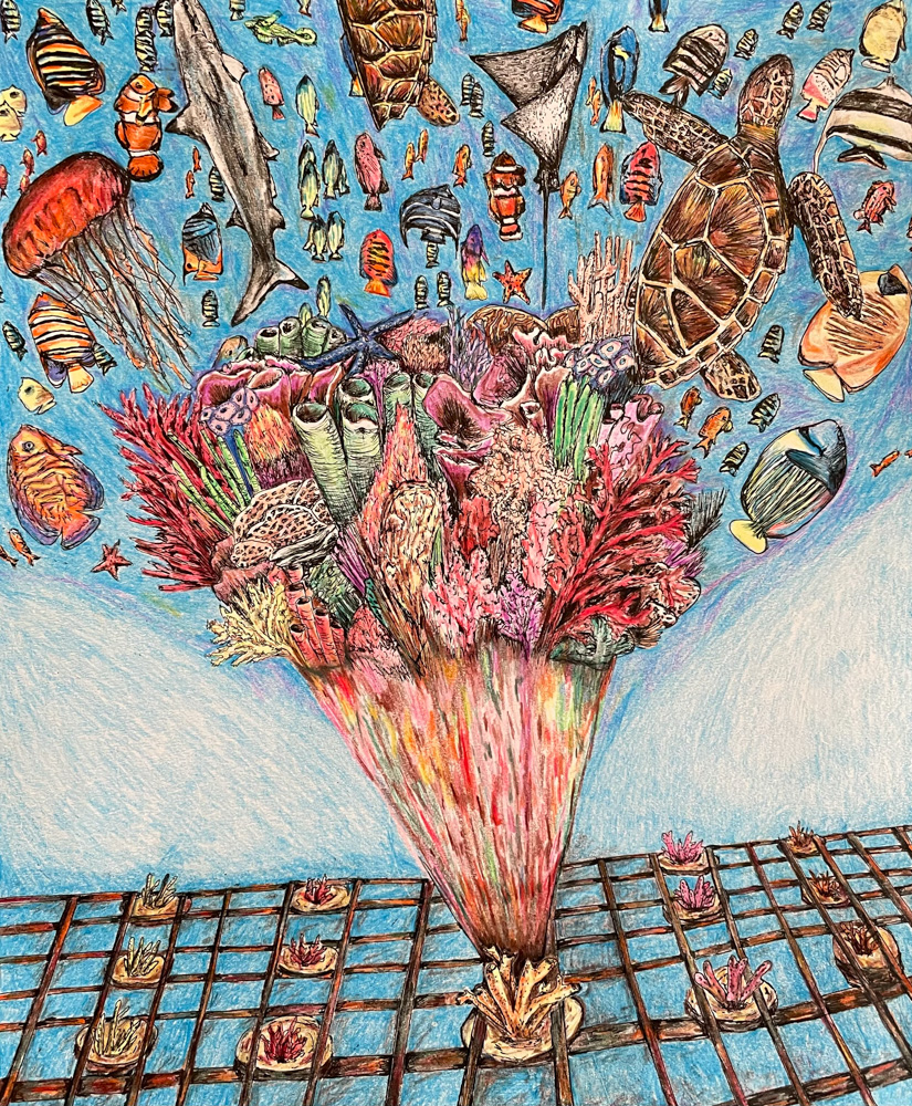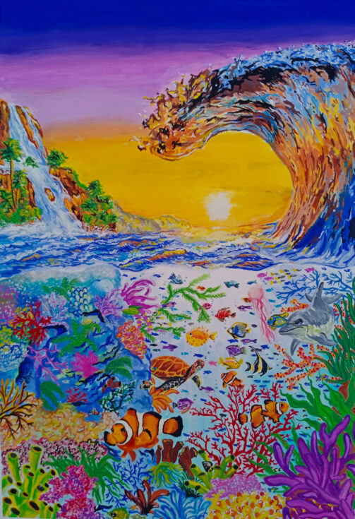 “Emerging From the Reefs” by Kaitlyn Fisher, Age 17, California, United States of America“Our World in Hydroponics” by Kiyoon Suh, Age 17, Republic of Korea “Ocean Pollution” by Chappannarangsi Suwannachart, Age 17, Thailand“Still There Is Hope” by Mrigna Goel, Age 16, India“Little by Little” by Si Nuo Li, Age 17, China“Ocean’s Womb” by Naina Singh, Age 16, India“Rooted in the Ocean” by Yeon Jae Lee, Age 16, Republic of Korea “One Land, One Sea” by Sophie Hao, Age 17, Maryland, United States of America“The Trash That Lingers” by Ashley Indarto, Age 16, Indonesia“’DARMAYA’ Our Heritage, Our Nature” by Salwa Putri, Age 16, Indonesia“The Coral Protector “by Chonnarith Chaisutthanon, Age 17, Thailand“Sanctuary” by Charissa Laurelia Nadine, Age 15, Indonesia“Above and Below” by Jacob Luckenbaugh, Age 16, Virginia, United States of America“Ancient Mariner” by Sophia Alessandra Moreno, Age 16, Philippines“Beach Day” by Yelim Kim, Age 16, Republic of Korea “Ridge to Reef Catastrophe” by Ashley Ko, Age 16, Nevada, United States of America“Shallow Waters” by Yuhan Zhang, Age 15, New Zealand“Reinvigorate” by Sophia Kim, Age 16, California, United States of America“A Fragment of Hope” by Lara Orlandi, Age 16, United Kingdom of Great Britain and Northern Ireland“I Can Hear the Sea” by Sooa Lee, Age 17, Republic of Korea “Diving Out of Time” by Victoria Lin, Age 16, California, United States of America“The Turtle’s Holiday” by Hayeon Kim, Age 15, North Carolina, United States of America“Ridge to Reef: Stimulates Ecological Balance” by Neha Avanigadda, Age 16, Kuwait“A Hold on Fishing” by Stacie Smith, Age 16, Georgia, United States of America“Coral Fence” by Pumiphat Jitnual, Age 17, Thailand“Hunting The Ocean” by Mia Wang, Age 17, New Zealand“The ‘Blue’ Path” by Julia Gu, Age 16, Washington, United States of America“Pesticides and the Coral Reefs” by Sihao Qian, Age 16, China“When Water Flows from Ridge to Reef” by Xixi Yu, Age 16, California, United States of America“Above the Smoke” by YiCong Zhu, Age 16, China“An Embraced Home” by Kacy Chung, Age 17, California, United States of America“A Matter of Life and Death” by Rowan Saunders, Age 18, Washington, United States of America“Cutting Our Coral Reefs Free” by Karis Choe, Age 16, California, United States of America“Save the Last Corals” by Homa Hassani, Age 18, Republic of Iran