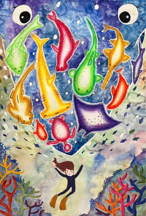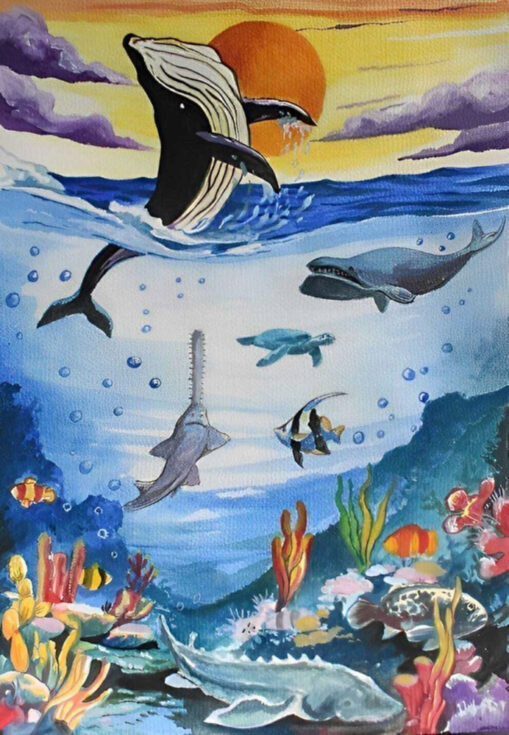 “The sea bears witness to everything” by Yanjun Mao, Age 14, China“Mother River saves lives” by Alexander Zhang, Age 11, China“Harmony in Blue” by Riddhi Joshi, Age 13, India“Plastic Ceremony” by Maggie Fang, Age 13, USA“The Cutest Park Rangers” by Robyn Toenniges, Age 13, USA“An Aching Beauty of Africa’s Waters” by Sharon Yitong Qian, Age 11, USA“Krill underwater” by Anna Sydorina, Age 13, Ukraine“Monk Seals Enjoyment” by Seray Keskincelik, Age 13, USA“A Dream” by Mason Mei, Age 11, United States of America“I meet you in my dreams” by Apitchaya Eangsan, Age 14, Thaila“A Leap of Desperation” by Sophie Bi, Age 11, USA“Tranquil Treason: Let’s expand the bubble!” by Sachit Vibhor Bhagat, Age 14, United Arab Emirates“Harmony of Um and Yang in the Cosmos” by Jimin Lee, Age 14, Canada“Atlantic Salmon” by Anna Seo, Age 11, Canada“Breaking Free” by Ariel Lee, Age 13, USA“Vanishing Beauty” by Jua Lee, Age 14, USA“Wings in Peril” by Neha Muppa, Age 14, USA“The Guardian” by Kavitha Varatharajan, Age 14, Australia“Underwater Angel” by Bonnie He, Age 13, USA“Sea Otters in Danger” by Isabella Yin, Age 14, Canada“The Dark Hand of the Cruise” by Eva Kay Mckinley, Age 14, USA“The Feast” by YiXuan Cheng, Age 14, China“Right Whale is Not Alone” by Candy Zhang, Age 11, China“The Universe in you” by Huy Voong Khang, Age 12, Vietnam“The Menu” by Yitian Wang, Age 13, China“Past, Present, and Future?” by Muyan Duan, Age 14, Canada“Let Me Come Home” by Marvell Chen, Age 14, Indonesia“The Sixth Extinctions” by Umme Aiman, Age 14, India“The Dark Journey Ahead” by Ridham Agarwal, Age 14, India“The Last Breath of Plasticity” by Maggie Liu, Age 14, USA“Musical Whale” by Siyan Chen, Age 14, USA“Saving a bowhead whale (Balaena mysticetus) from ice captivity” by Anna Ospishcheva, Age 14, Russian Federation“Possible Futures” by Vedha Athmanathan, Age 13, UK“A Life in a Melting Arctic” by Leyi Li, Age 13, USA“Vaquita Porpoise” by Elizabeth Pytak-Ryder, Age 13, UK“Endangered Beauty” by Angeline Keisya, Age 13, Indonesia“Last breath” by Alexandra Yakunina, Age 14, Russian Federation