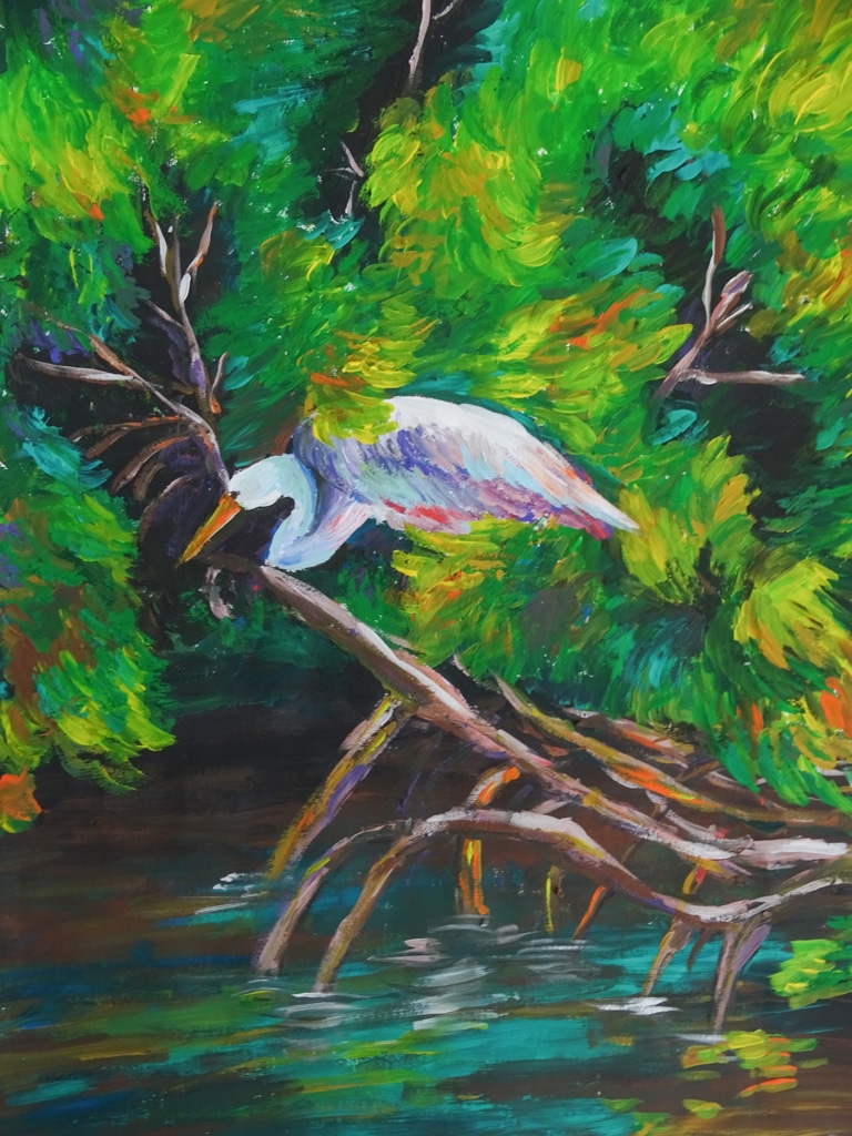 Artist's Statement: I have seen mangrove trees only on television, on the Internet and in magazines, but I know that they are not only very beautiful, but extremely important for the lives of people around the planet. Mangrove forests help to create healthy seas, as they act as breeding grounds for fish, shrimp, crabs and other marine animals that breed among the roots of trees. They also play a role in combating the climate crisis, as they have a great ability to store carbon, retaining more of it than terrestrial forests of the same size. However, their importance is not sufficiently recognized, so let us all unite together and protect these trees.