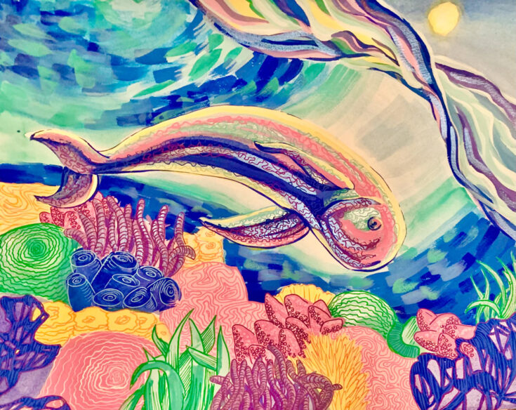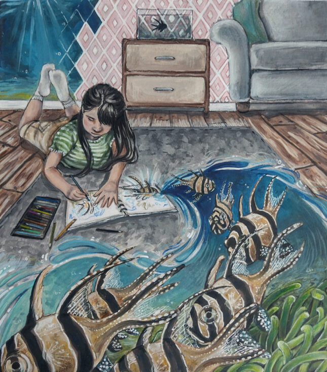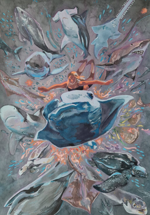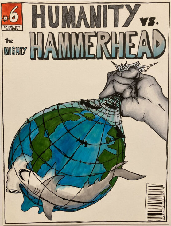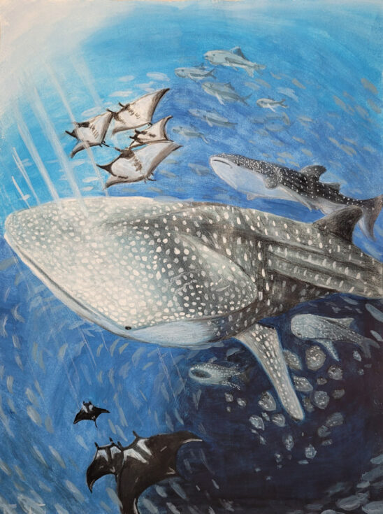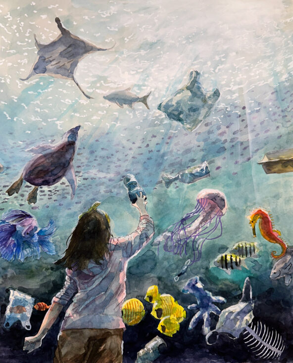 “Graceful Giants: The Beauty of the Whale Shark” by Gregory Madro, Age 18, Canada“The Way Back” by Teresa Hyoju Chang, Age 16, Korea “Keystone of the Deep” by Xinyan Meng, Age 17, China“All Lives Matter” by Fatimah Faheem, Age 17, USA“The Lively Porpoise” by Kalla Dominguez, Age 18, USA“Mother’s Protection” by Yewon Lee, Age 16, USA“Exhibition: Sixth Mass Extinction” by Hongjung Jeon, Age 15, USA“Struggle” by Mila Jeremic, Age 16, USA“Writing the Next Chapter” by Annette Kim, Age 15, Korea“We Got Your Back” by Hanae Matsumoto, Age 17, USA“Tracking the Current” by Yinuo Zhou, Age 17, USA“Spirits of the Whale Shark” by Sichen Li, Age 17, USA“A Dive into the Future” by Bianca Aze Bedis, Age 16, Philippines“The Protectors” by Sinbi Lee, Age 16, Republic of Korea“Hajat Laut” by Sahira Nadifa, Age 16, Indonesia“Protect seabirds, friends of mankind” by Yifan Zhang, Age 16, China“Enhydra” by Jessie Park, Age 15, Singapore“Lifeguard Needed” by Lena Badylak, Age 15, Poland“Steller Stargazing” by Julianna Stanley, Age 18, USA“Polluting Our Oceans” by Sophia Guth, Age 15, Australia“The Joy of Letting Go” by Heeseo Yoon, Age 16, USA“Preserving the Bluefin” by Ashaley Jiang, Age 16, USA“Last of the Coelacanths” by Joy Kim, Age 15, USA“Hope Beyond Extinction” by Mia Boukarroum, Age 16, USA“Connecting” by SeHyeon Cho, Age 17, Korea“The Mighty Hammerhead Faces Humanity” by Kohana Porter, Age 17, USA“The World in Our Hands” by Charissa Laurelia Nadine, Age 17, Indonesia“The Rise of the Whale Sharks” by Dami Kim, Age 17, USA“The beauty of life, towards a mass extinction.” by Lucía Roig Lago, Age 18, Spain“We Are Next” by Boram Shim, Age 16, USA“Sacred Beauty Within” by Talya Nasser, Age 15, Kuwait“Fish Guts” by Alexander Tseng, Age 16, USA“Experiencing Perspectives” by Archie Junio, Age 17, Philippines“Anthropocene” by Keyun Xiao, Age 16, USA“A Fence for the Sea” by Matin Alizadehshirazi, Age 17, Iran“This is How it Starts” by Amy Brown, Age 17, UK“Suffocating Oceans” by Ziqi He, Age 18, USA“The Currents of Pollution” by Celine Yang, Age 15, Korea “Bloom Capital” by Franciska Somogyi, Age 18, USA“One Fish at a Time” by Cara Lee, Age 15, USA“Dreamed Destiny” by Erin Park, Age 16, USA“Oil hug” by Yaroslava Nazarenko, Age 16, Ukraine“Bottle Cap” by Mengyang Pan, Age 18, USA“Graceful Giants of the Sea: An Ode to Nurse Sharks” by Mara Murphy, Age 17, USA“Distant Withering of Beauty” by Xutong Liu, Age 16, China“Diving Into the Past” by Yeonwoo Choi, Age 17, USA