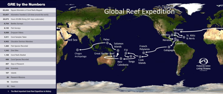 The Global Reef Expedition circumnavigated the globe over the course of ten years to address the coral reef crisis