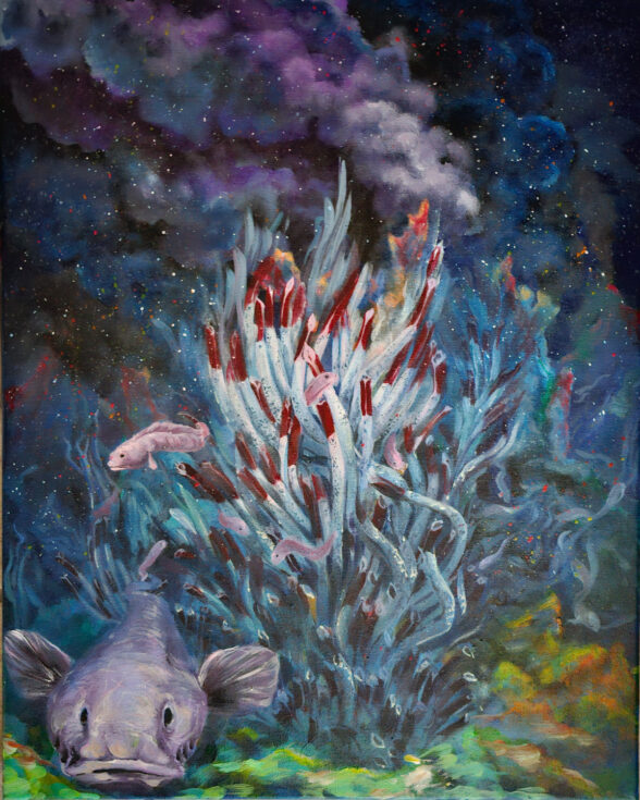 Securing Second Place is “Under the Sea” by Nadia Cho, a 16-year-old artist also from the United States of America. Nadia’s artwork focuses on the intricate ecosystem around hydrothermal vents, showcasing the importance of tubeworms and their symbiotic relationship with chemosynthetic bacteria. Her piece highlights the unique beauty of this ecosystem and draws parallels to coral reefs, emphasizing how tubeworms, like corals, provide protection and habitat for many organisms.