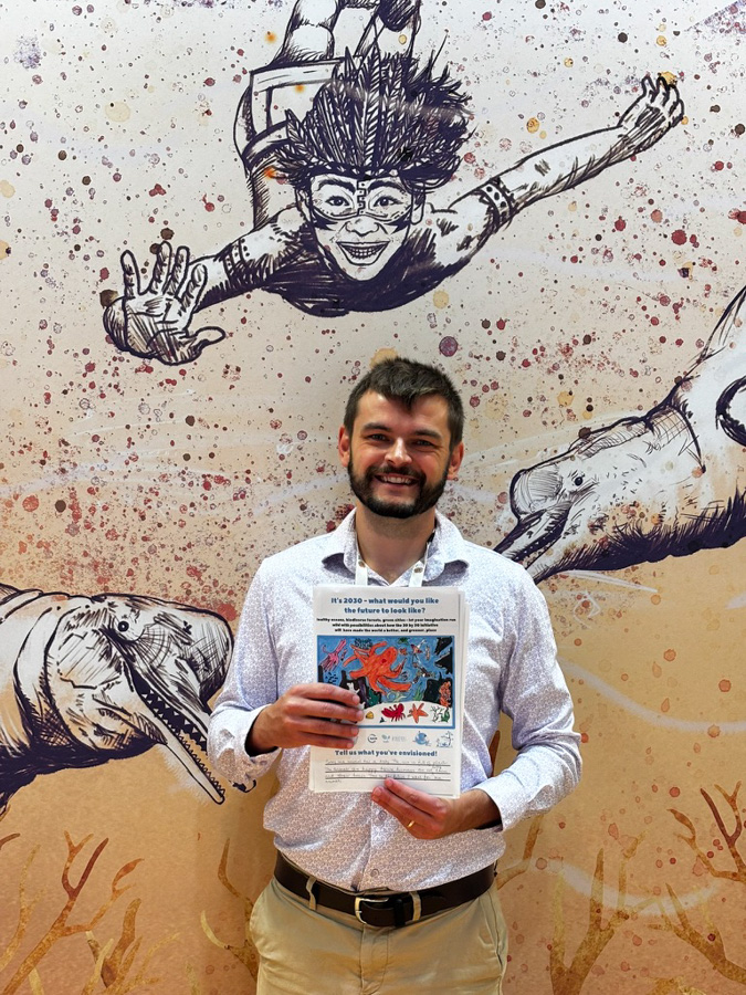 Winning artwork held up at IUCN’s World Conservation Congress. Image courtesy of Exploring by the Seat of Your Pants.