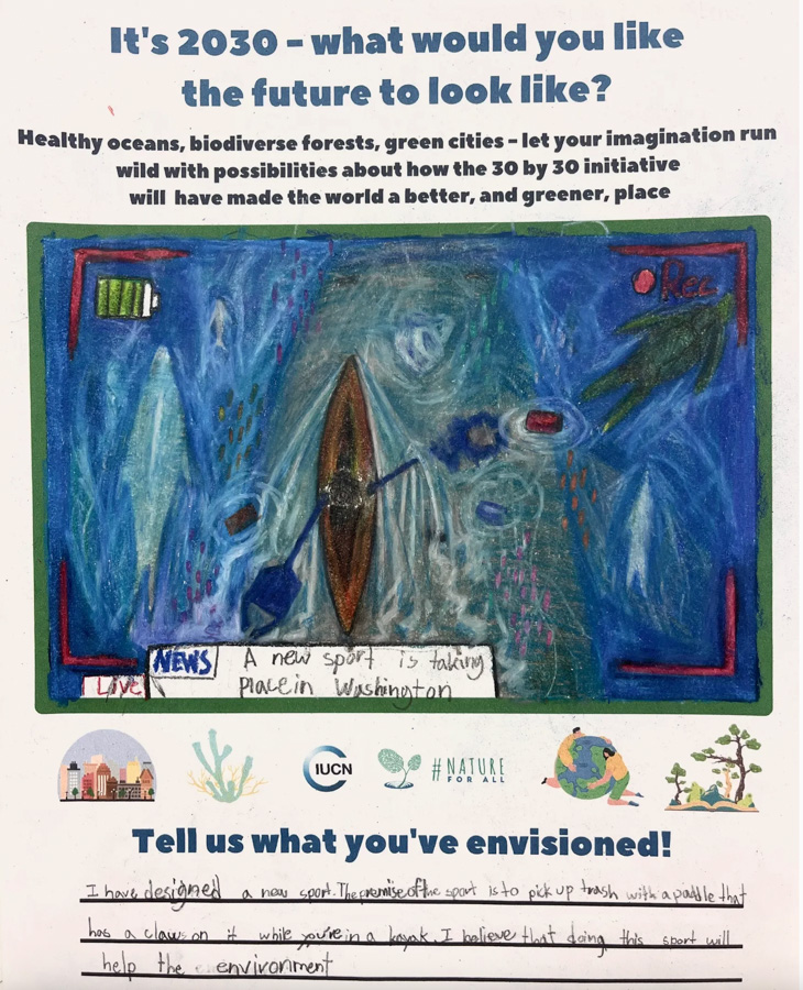 A highlight of our involvement was co-sponsoring the #NatureForAll 30 x 30 Youth Art Contest, organized in collaboration with IUCN #NatureForAll, the Bow Seat, and Exploring by the Seat of Your Pants. Open to students ages 5–19 worldwide, the contest celebrated young people’s creativity and their vision for a sustainable future. More than 360 students from North America, Asia, Europe, Africa, and Central America submitted their artwork—each piece reflecting a unique connection to the natural world. We were thrilled that selected student artwork was exhibited at the World Conservation Congress, providing a vivid and inspiring reminder of the power of youth voices in shaping a sustainable future.