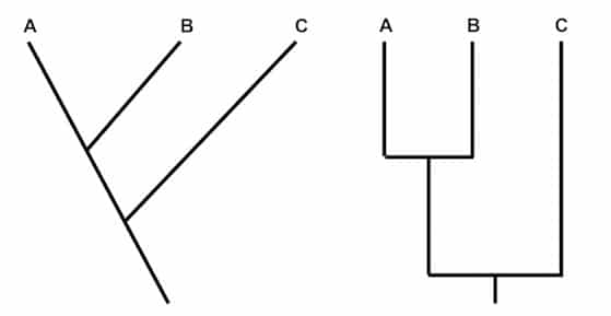 There are many ways to draw a cladogram. Figure 2-18 shows two common ways: