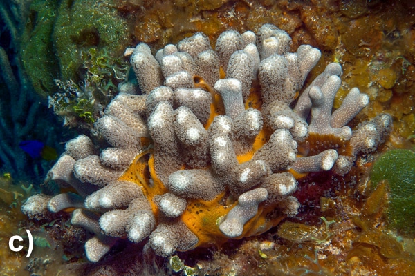 Figure 2-4. a) Tubastrea sp.; b) Scolymia sp.; and c) Porites sp.