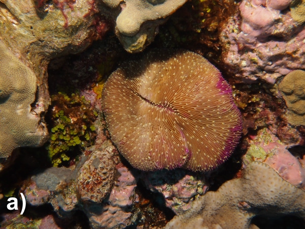 Figure 3-2. a) Solitary mushroom coral; b) Colonial brain coral containing hundreds of coral polyps
