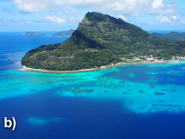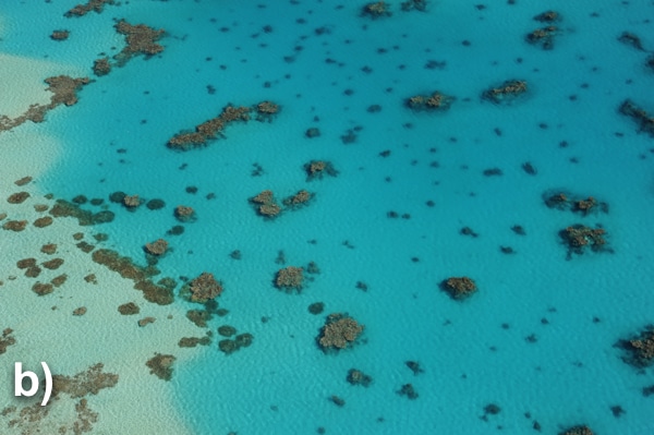 Figure 10-9. a) Patch reefs, Society Islands, French Polynesia; b) Patch reefs, Austral Islands, French Polynesia