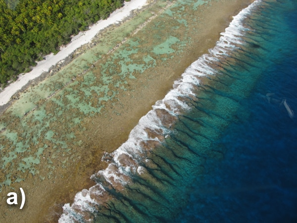 Figure 10-6. a) Fringing reef, Society Islands; b) Fringing reef, Mangareva Island, Gambier