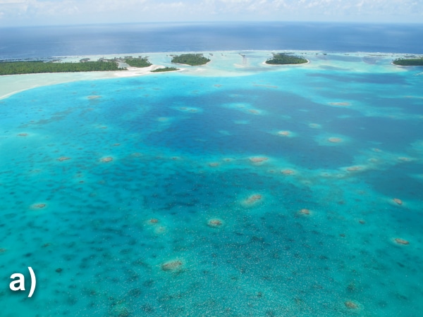 Figure 10-9. a) Patch reefs, Society Islands, French Polynesia; b) Patch reefs, Austral Islands, French Polynesia