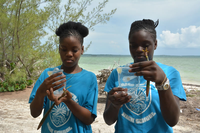 Students from Abaco Central High School collect mangrove leaves and propagules while participating in the Bahamian Awareness of Mangrove (B.A.M.) Project