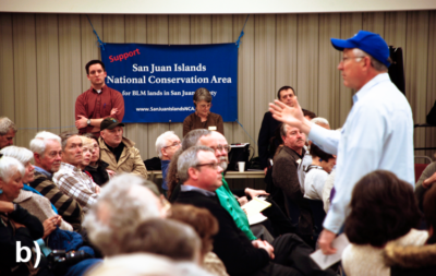 b) By Bureau of Land Management [CC BY 2.0 (https://creativecommons.org/licenses/by/2.0/deed.en)], 24 November 2013 via Wikimedia Commons. https://commons.wikimedia.org/wiki/File:Secretary_Salazar_Anacortes_03_(6926313923).jpg.