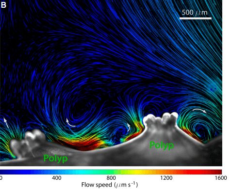 Source: Shapiro, O.H., Fernandez, V.I., Garren, M.S., Guasto, J.S., Debaillon-Vesque, F.P., Kramarski-Winter, E., Vardi, A. & Stocker, R. 2014. Vortical ciliary flows actively enhance mass transport in reef corals. Proceedings of the National Academy of Sciences 111 (37): 13391-13396.