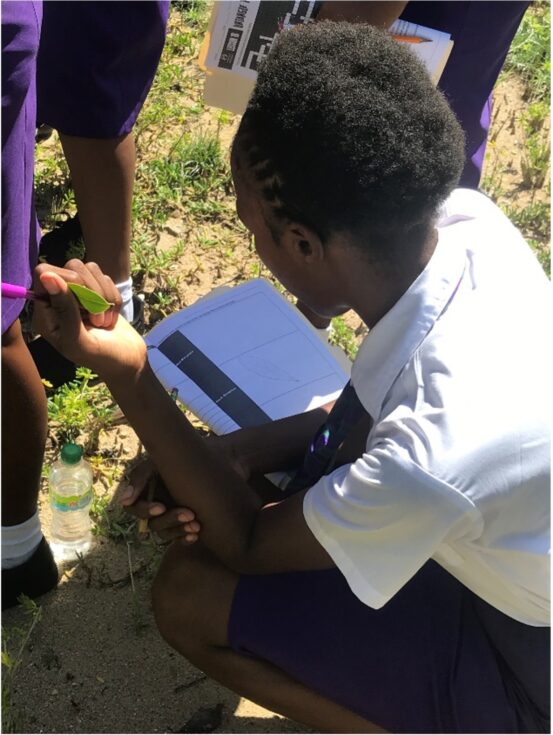 After Amy’s welcome, we handed out a survey to the students, which I will use in my research. I could feel the nervousness shifting from me to them. They were desperately trying to find the right answers, despite not receiving any prior information about mangroves. To my surprise, most of them had never even heard the word “mangrove,” let alone knew the meaning of the word. Students started raising their hand, asking questions (some of them in Patois, which I was desperately trying to understand). Being able to answer them, even if it’s just to say, “I cannot give you the answer to this question” made me feel calmer. Luckily, there were also members of the Alligator Head Foundation(AHF) with us, who knew a lot more about the program than I, and who are great at communicating with the students.