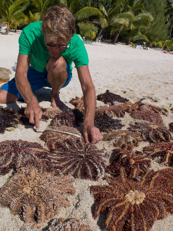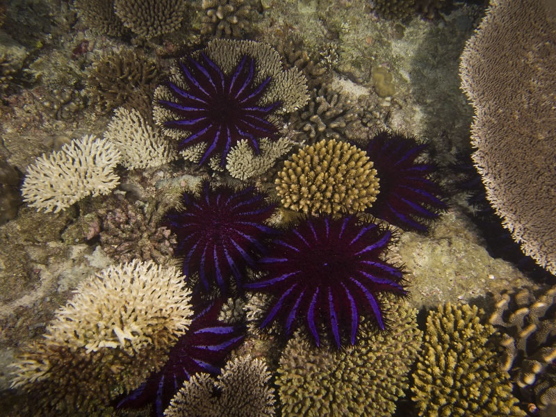 Crown of Thorns Starfish are a significant threat to coral reefs in the Indo-Pacific region. When outbreaks of these starfish are not controlled quickly, COTS often consume all the coral in one area and spread to neighboring reefs. Severe outbreaks of COTS are capable of destroying an entire reef system in a matter of weeks, and reefs may require decades or more to recover. Without corals, the fish that depend on reefs for feeding, shelter and breeding grounds will disappear. With millions of visitors to coral reef nations every year, COTS outbreaks have the potential to have a devastating impact on dive tourism.