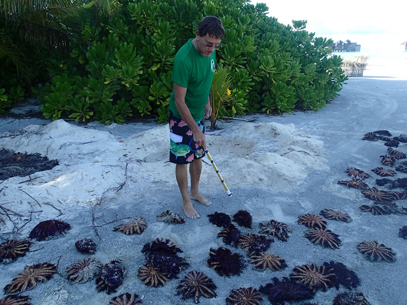 The project in the Maldives is part of the Foundation’s Starfish Control and Removal (SCAR) Program designed to protect reefs from the damaging effects of the coral-eating starfish. The SCAR program has three components: an assessment of the condition of the reef and the amount of damage caused by the starfish, the removal of the COTS during outbreaks, and training others to remove COTS.