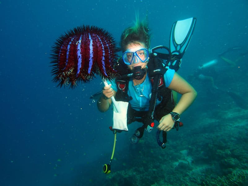 This project provided recreational divers and dive operators with the opportunity to take an active role in conserving the reefs they value. Because scientists are unlikely to be able to deal with the scale of the problem alone, citizen scientists, and local divers play a critical part in the success of COTS removal efforts. By working side by side with local divers, we were able to greatly increase the number of starfish that were removed from these reefs.