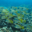 The Living Oceans Foundation continued its series of ocean research expeditions off the Red Sea coast of Saudi Arabia in May, 2008, focusing on Yanbu Barrier Reef and Al Wajh Bank area, north of the city of Jeddah. In collaboration with the National Commission for Wildlife Conservation and Development (NCWCD), National Coral Reef Institute (NCRI), the World Conservation Union (IUCN), and Cambridge Coastal Research Unit, we mapped and characterized shallow marine habitats and assessed the health and resilience of these aquatic ecosystems. The goal of this project was to create ocean floor habitat maps from multi-spectral satellite imagery and an airborne hyperspectral sensor, and to conduct SCUBA surveys of fish, coral, marine mammals, and benthic habitats. All of these maps have been published, and can now be found on our World Reef Map as well as in the Atlas of Saudi Arabian Red Sea Marine Habitats