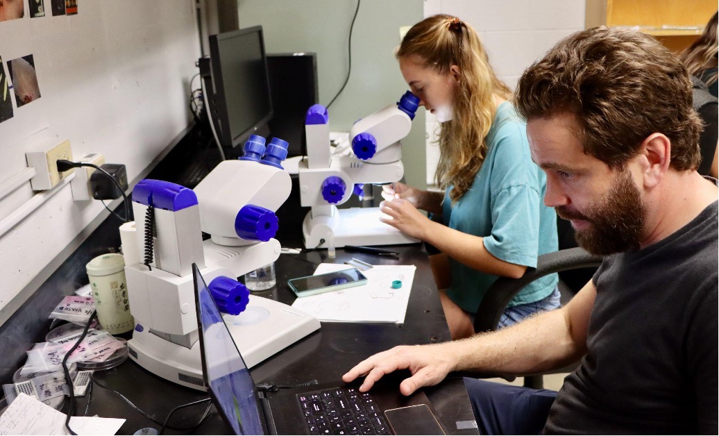 Arguably the most complicated part of our scientific process is the identification of foraminifera. This is one of the largest undertakings in the lab, and the work is incredibly complex; it takes months to be well-versed in the foraminifera of a particular location. Looking at a glued slide through a microscope, I am able to identify each foraminifera down to the level of genus. Another undergraduate research assistant (or occasionally, Dr. Humphreys, who will stand in when no students are available) will sit nearby to enter the data as I call it out.