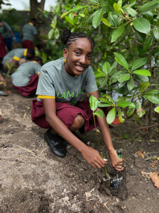 Mangrove forests are vital to coastal resilience, acting as natural storm barriers, stabilizing shorelines, improving water quality, and providing essential habitat for marine life. However, according to NEPA, Jamaica has lost 2,000 hectares of mangroves in 15 years since 2010 due to deforestation, development, and other human activities—leaving coastal communities more vulnerable to storm surges, erosion, and food insecurity. The J.A.M.I.N. program teaches students about the importance of these ecosystems through hands-on, project-based learning and active restoration efforts.