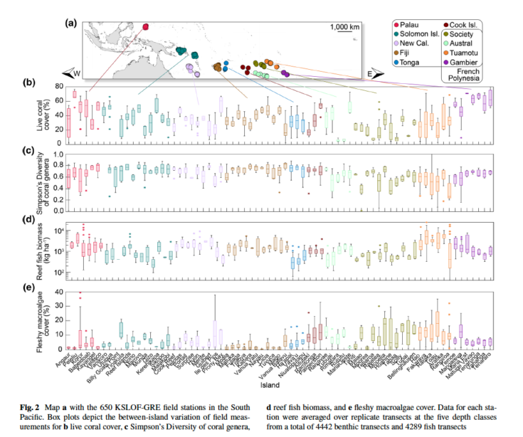 Anna used a subset of the full Global Reef Expedition dataset from the South Pacific as a preliminary test for her first set of models. For the first step, she successfully developed accurate models for all four ecosystem metrics of coral cover, coral diversity, fish biomass, and macroalgae cover. She also identified which of her socioenvironmental variables were the most important drivers of each metric. The amount of coral cover and fish biomass on a reef were primarily driven by heat and anthropogenic stress, while marine protected areas were the most important in determining coral diversity and macroalgae cover.