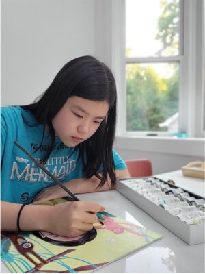 Amy started taking art classes in Korea in the first grade and continues to take extra classes at YM Studio. She hopes to one day become an artist or an animator. Although Amy has a bright future as an artist, she is very humble about her artistic abilities. Amy was less apt to talk about her artwork but spoke instead about the other finalists’ art. Amy commented, “The other finalists’ artwork really inspired me and taught me even more about the ocean and how humans are damaging it.” She also stated how interesting it was to see so many different beautiful styles of artwork.