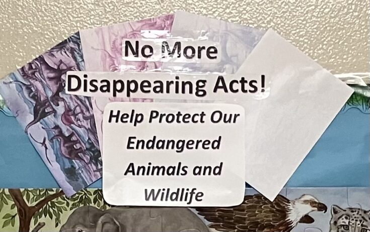 Later, I found out that some of the students intended on entering the contest, but due to weather cancellations, the students couldn’t complete the original artwork in time for submission. Nevertheless, Dr. Louden created a classroom display for the students to showcase their artwork, which they named “No More Disappearing Acts.”
