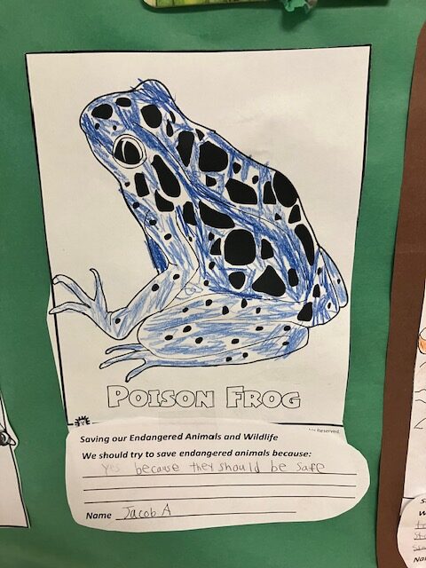The students’ teachers felt that this activity had a considerable impact on their students. Mr. Joslyn acknowledged, “Students enjoyed learning about the interesting animals, however, they were truly concerned about their well-being and that some animals may not be around in the future. This project helped establish a strong foothold of concern and awareness for our students.”