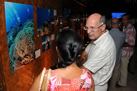 In 2013, we held a photo exhibit and scientific presentation in French Polynesia for government officials and representatives of local conservation organizations. The exhibit featured the work of iLCP photographer Michele Westmoreland, who joined us on the Global Reef Expedition in French Polynesia. The exhibit featured her images of vibrant life on some of French Polynesia’s remotest reefs, places that had been hidden to most people who attend the exhibition.