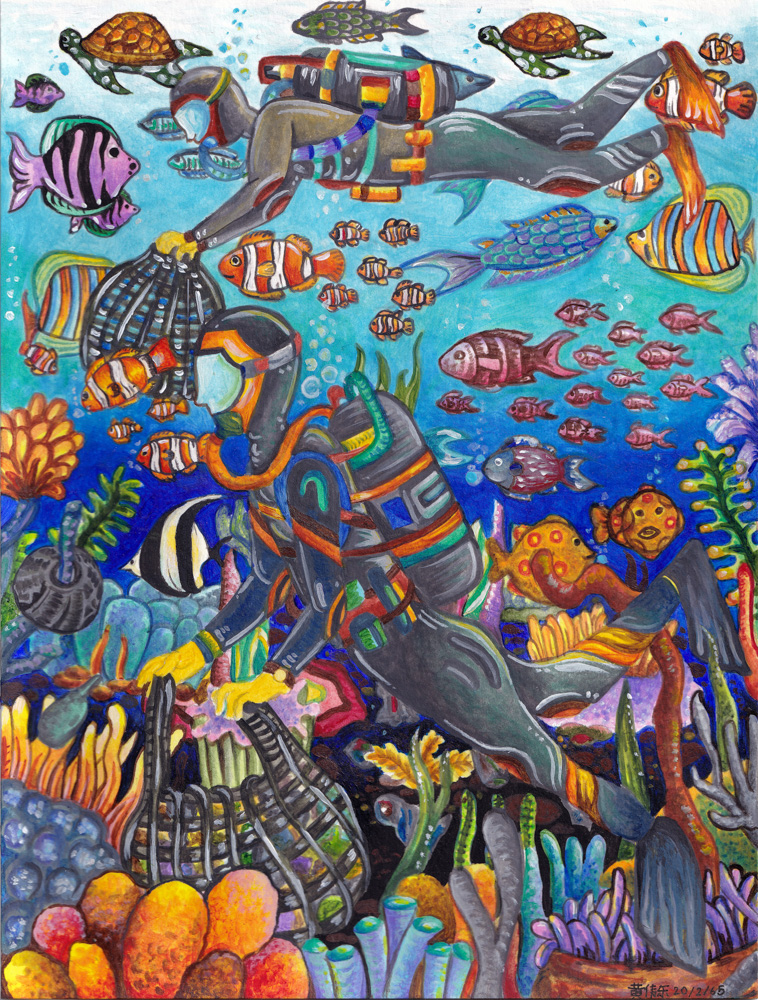 The Khaled bin Sultan Living Oceans Foundation is pleased to announce the semi-finalists in our 2022 Science Without Borders® Challenge! This international student art contest engages students in important ocean issues through art. For this year’s competition, students were asked to illustrate one or more of the ways people can use a ridge-to-reef approach to conservation to preserve coral reefs.