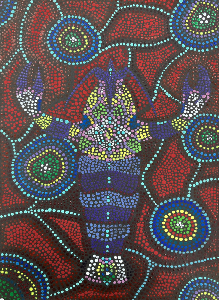 ARTIST STATEMENT: Each tiny dot in my painting symbolizes how every small action that we need to take can ensure the health of the ocean and its inhabitants, including lobsters (which are my favorite species!) I also wanted to express how lobsters, like all creatures, are a result of countless small interactions over millions of years. In a way, it is a miracle that lobsters exist today. Therefore, the dots represent a journey, both in the past and the future, that have led and will lead marine life to thrive in such a diverse and beautiful way. I painted a lobster by just using dots to show how important lobsters are in marine ecosystems. Lobsters are keystone species because they help maintain the balance in the ocean by feeding other animals and digging the seafloor. My dot art represents how every small action contributes to the bigger picture of the ecosystem’s health.
