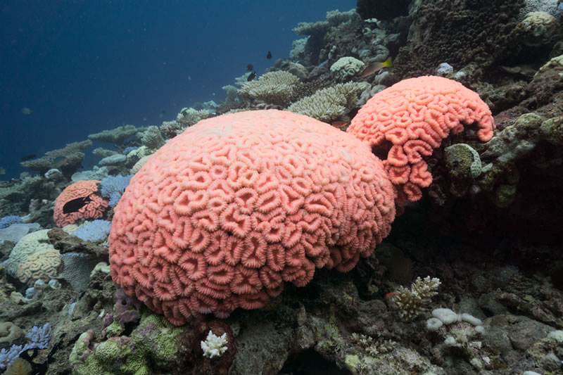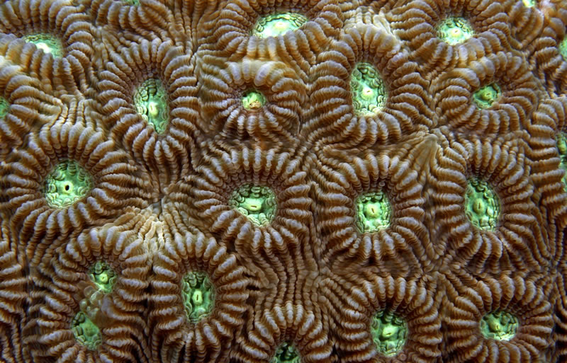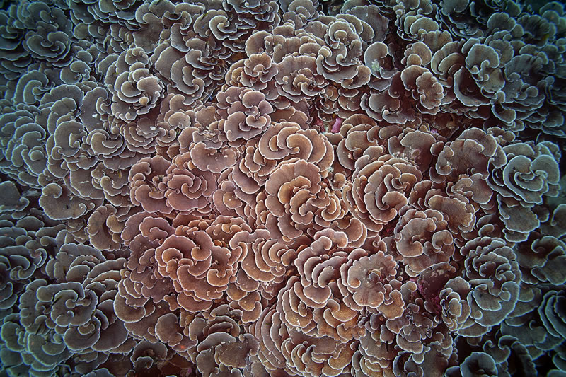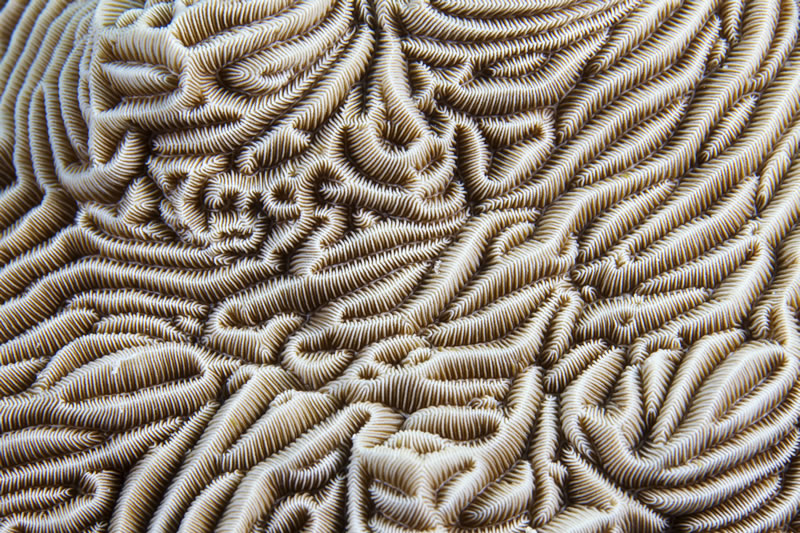 A close up view of the many ridges and valleys within the hard coral (Pachyseris sp.). This coral is also known as elephant skin coral due to its similar appearance. It\'s a zipper coral. ©Keith Ellenbogen/iLCP