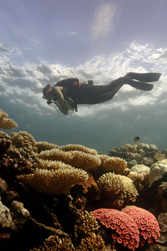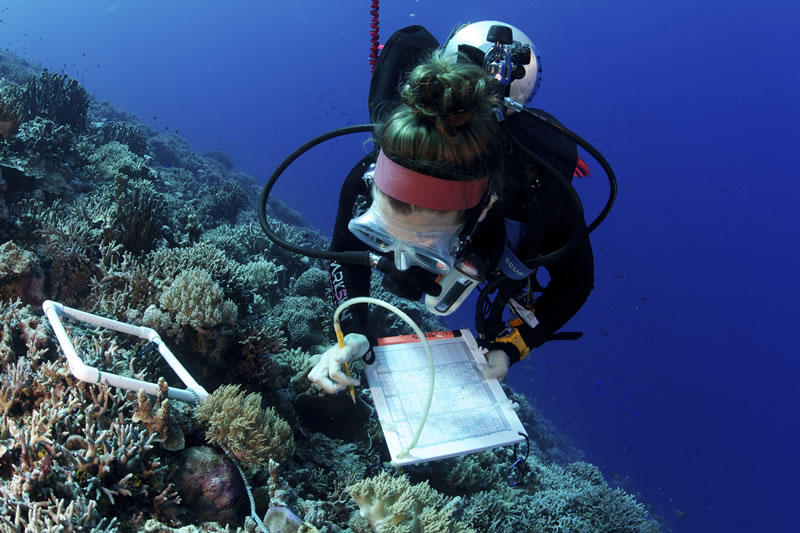 Scientist conducting benthic surveys of the coral reef. ©Keith Ellenbogen/iLCP