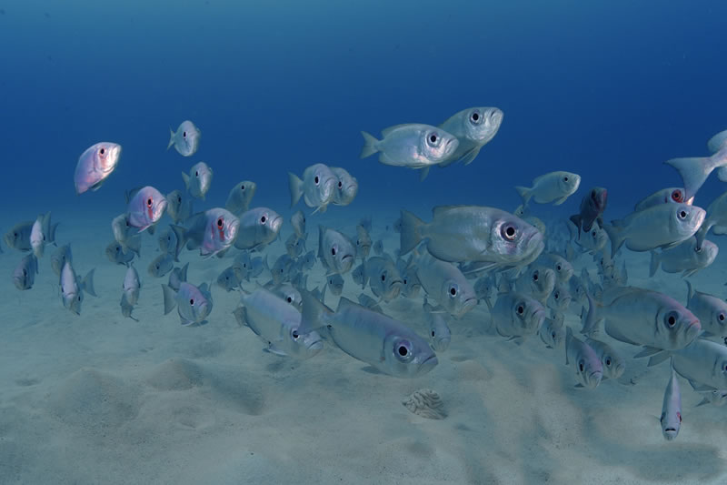 Even the areas away from the reefs had large schools of fish in Palau. ©Keith Ellenbogen/iLCP
