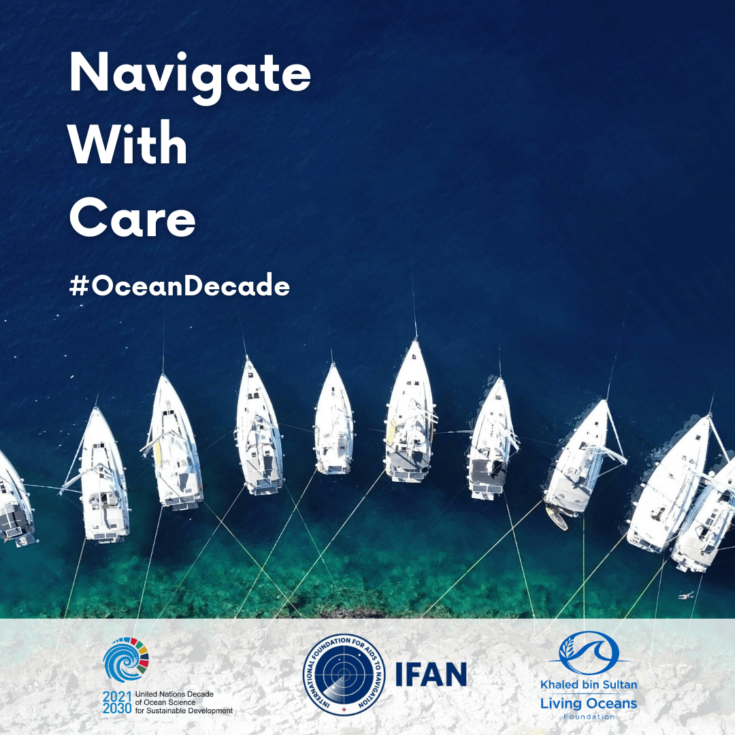 Navigate with Care is a joint campaign by the Khaled bin Sultan Living Oceans Foundation and the International Foundation for Aids to Navigation. It promotes safe and environmentally responsible navigation practices that protect both people and marine life.