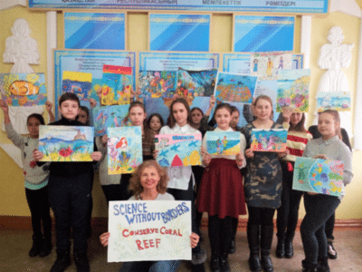 Natalya also brought her travel experience back to her classroom. After having shared her emotional story with her students, they were inspired to create art for our contest. When asked why she had her students enter, she said, “I was shocked by the loss of coral reefs. As a teacher, I consider it my duty to interest my young students in generating ideas for saving coral reefs.”
