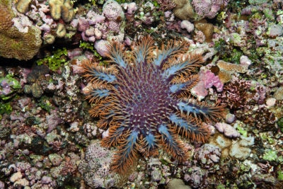 While conducting coral reef surveys in the Cook Islands, scientists were shocked to see the ongoing devastating effects of a Crown-of-Thorns-Starfish (COTS) outbreak. On the reefs surrounding the island of Aitutaki, over 80 percent of the live coral community was decimated by these corallivores. But what exactly are COTS?