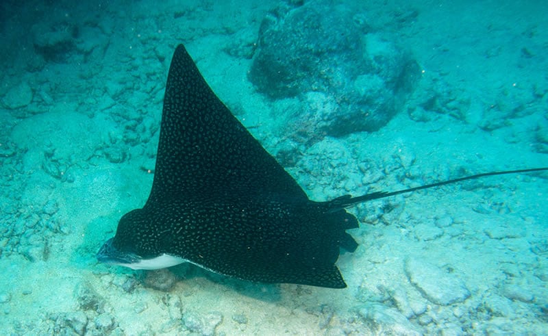 In both cases he was right on the money. We first found the green turtle and later observed close to two dozen spotted eagle rays.