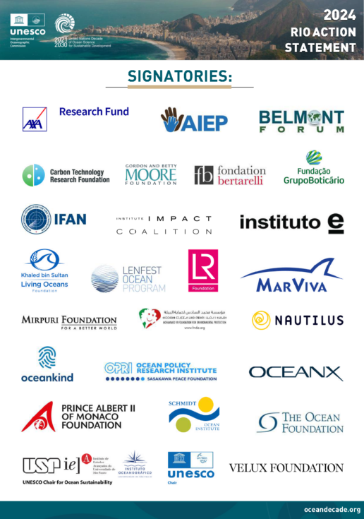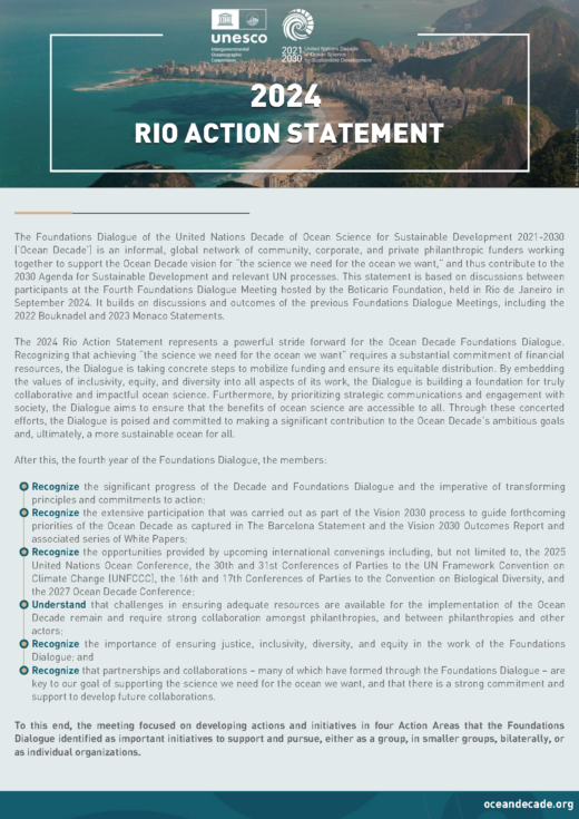 The Living Oceans Foundation is proud to join 25 other philanthropic organizations in signing the Rio Action Statement, an innovative commitment to advance the goals of the UN Decade of Ocean Science for Sustainable Development (2021-2030). This joint statement, crafted at the Fourth Ocean Decade Foundations Dialogue meeting in Rio de Janeiro, Brazil, outlines a strategic roadmap for mobilizing resources, fostering collaboration, and strengthening communication to support ocean science initiatives ahead of the 2025 UN Ocean Conference.