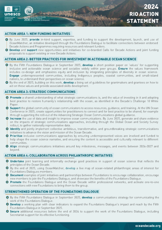 The Rio Action Statement builds on the priorities identified in the 2023 Monaco Statement and focuses on four key action areas: