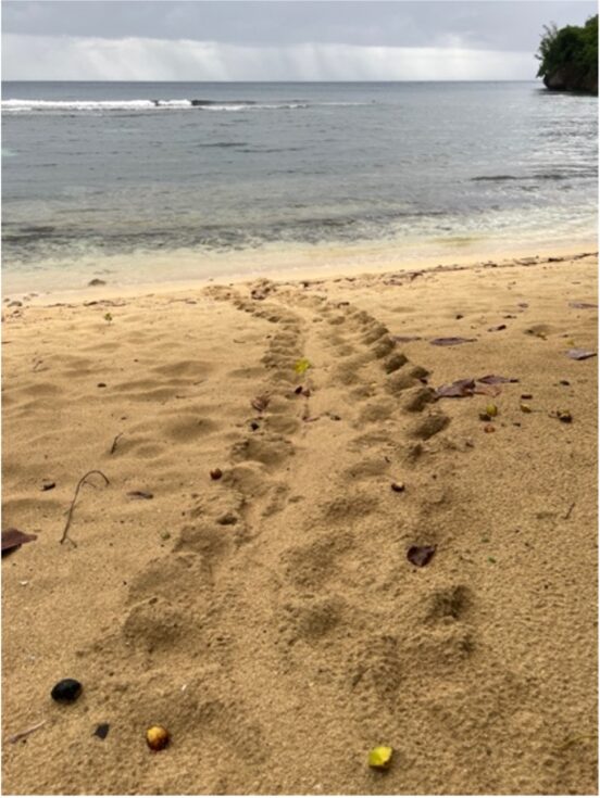 After completing our task, we realize that Francine has found another nest. This one is above the tide line and in a safe location. The nest is left for nature run its course; however, AHF staff take a GPS location and covers up any evidence so that predators and poachers will not find it.