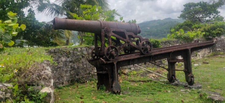 The fort was constructed in 1729 and named after Great Britain’s King George I. An imposing stone complex, it was constructed with walls ten feet thick and lined with 8 cannons and 22 guns. It was erected specifically to provide protection from both foreign invaders as well as the Jamaican maroons, who by this time were living nearby and still attacking frequently enough to be deemed a serious threat by the British.