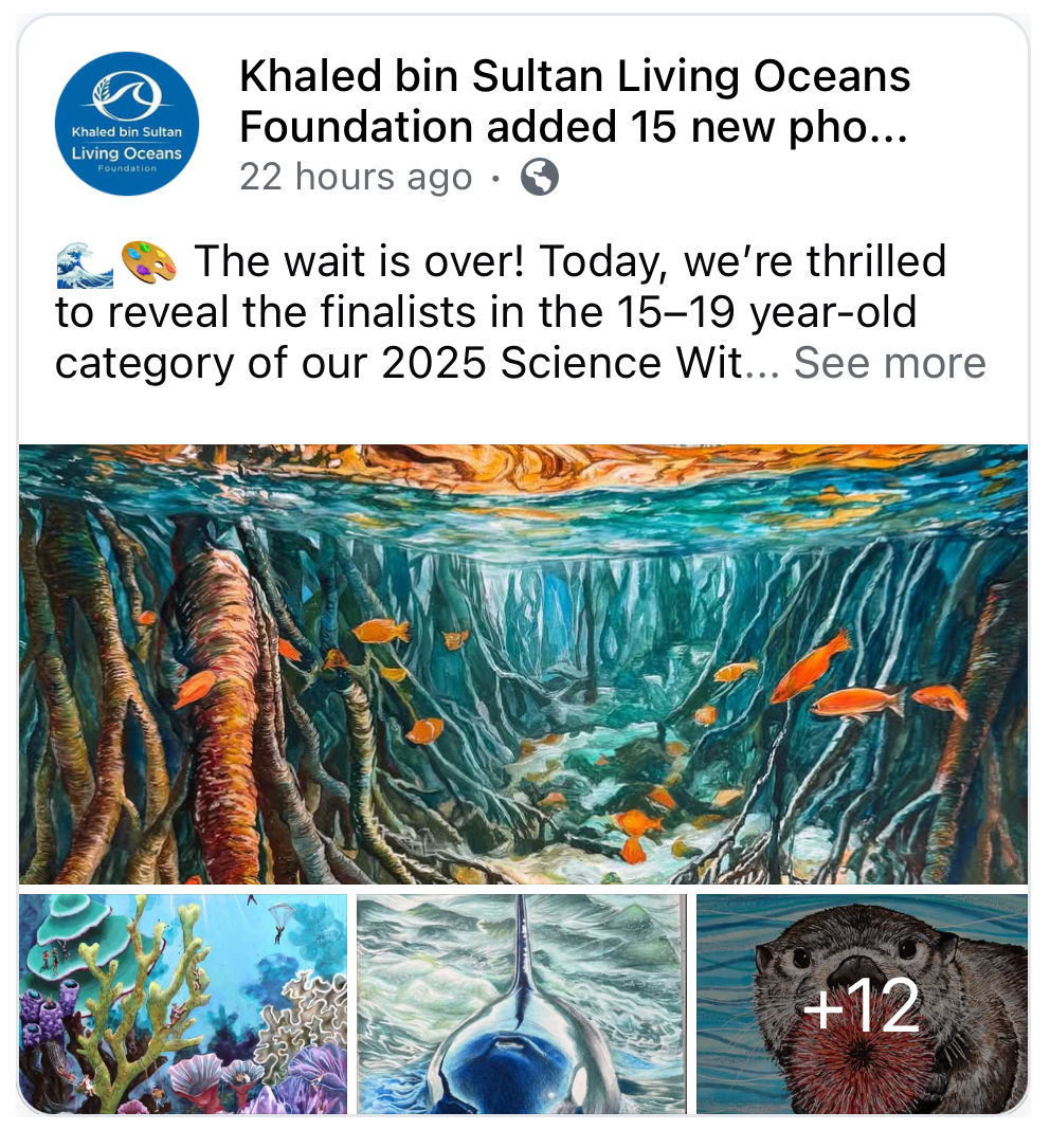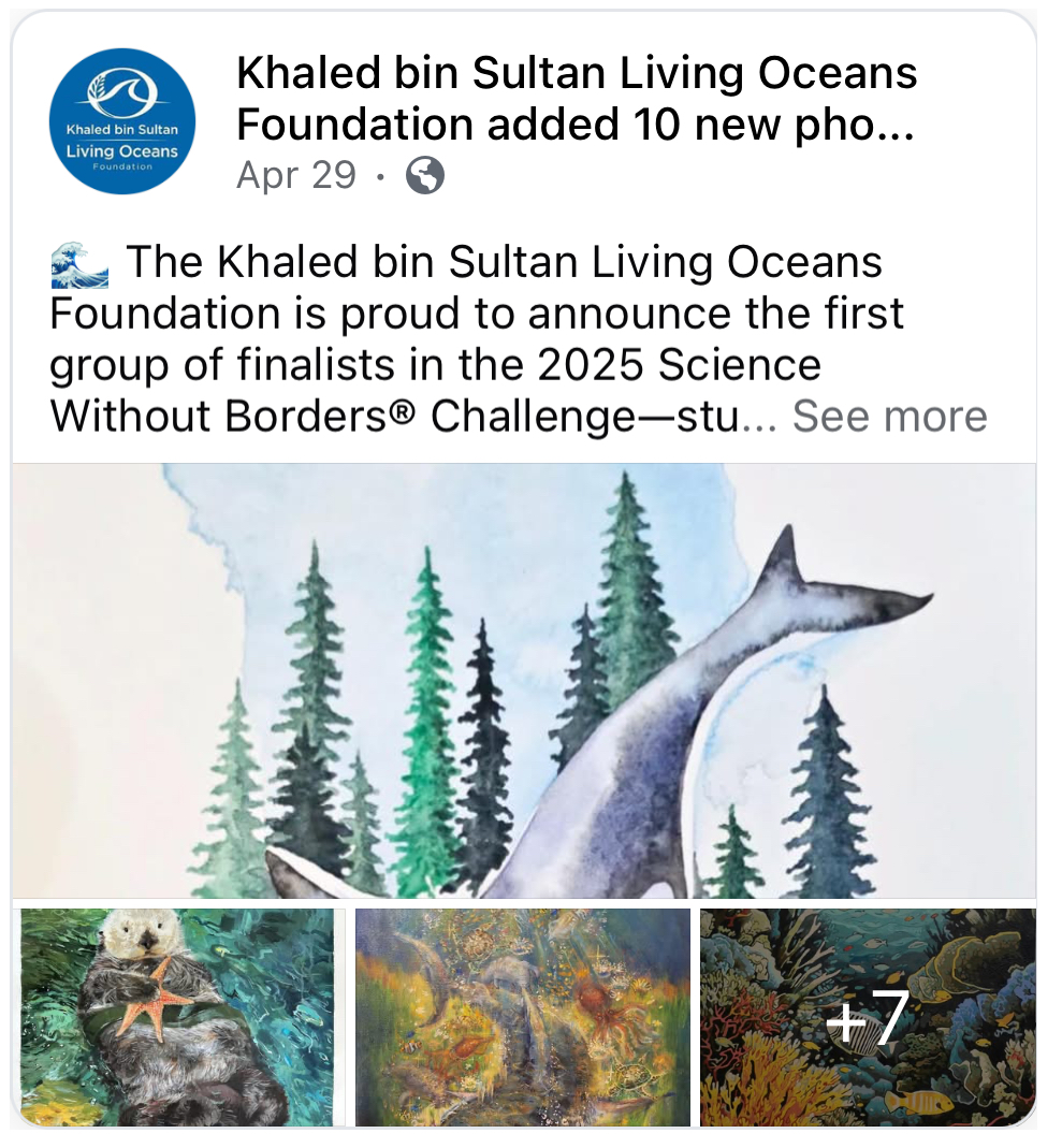 It’s time to vote for your favorite artwork in the 2025 Science Without Borders® Challenge—help us select the People’s Choice award winners! Hosted by the Khaled bin Sultan Living Oceans Foundation, this annual student art contest engages young people in ocean science and conservation through art and raises awareness of important ocean issues around the world.