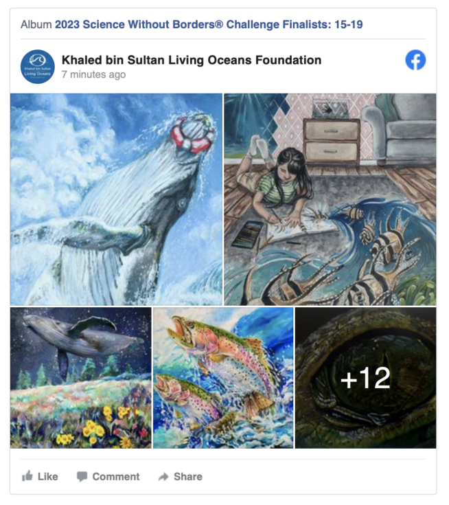 It’s time to cast your vote for the best artwork in the 2023 Science Without Borders® Challenge! This annual art contest, run by the Khaled bin Sultan Living Oceans Foundation, is designed to raise awareness about important ocean issues and engage students in ocean science and conservation through art.