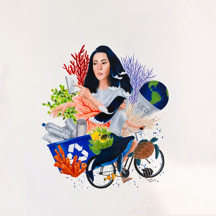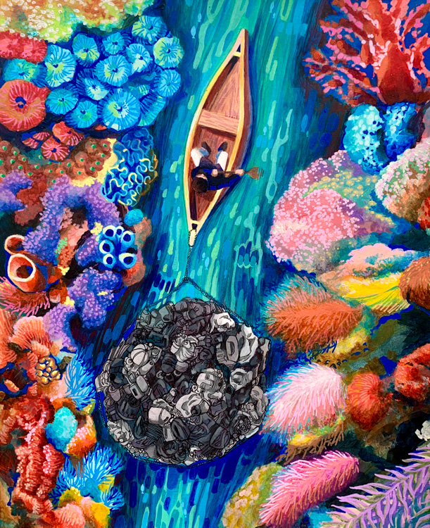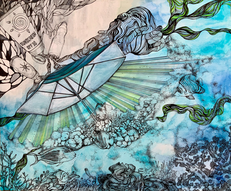 Stacey Lei won first place in the high school category of the 2020 Science Without Borders® Challenge for her stunning artwork, “The Reef We Read.” A 16-year old student at West Career and Technical Academy in Las Vegas, Nevada, Stacey created a piece of art that illustrates the importance of education and outreach in coral reef conservation. “Coral reefs are dying because of negative human activities,” she said. “The lack of awareness surrounding the reefs have contributed to its destruction, but education paves our future.”