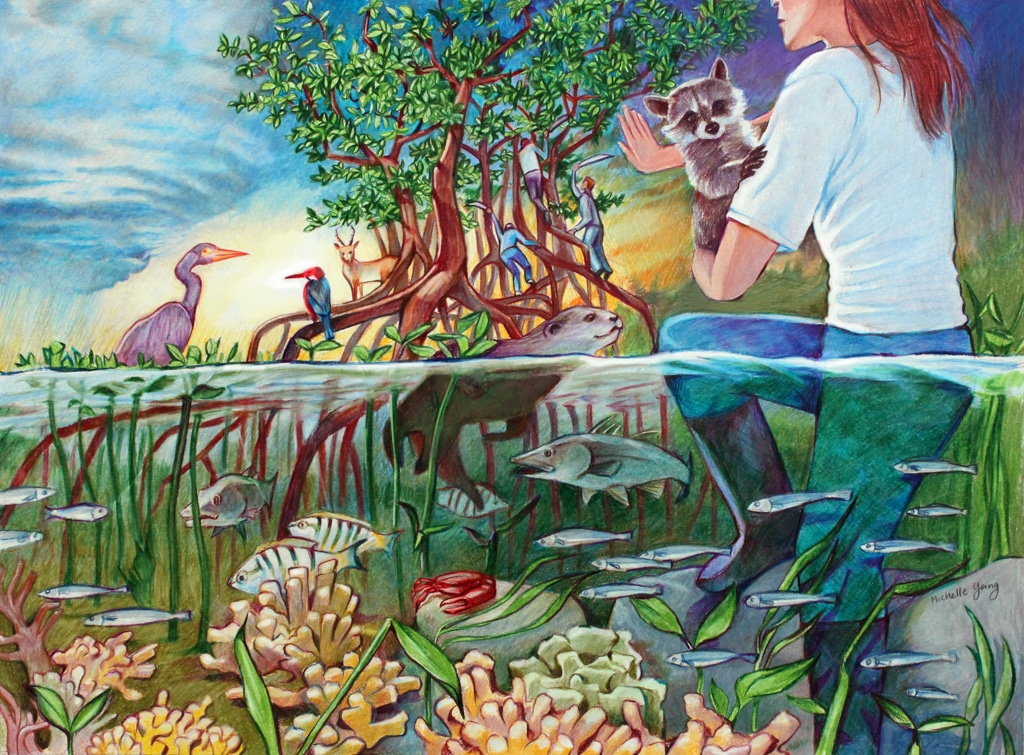 Third Place: “Stop, Let’s Preserve Our Mangroves” by Michelle Yang, Age 16, California, United States of America