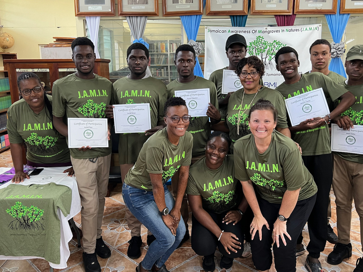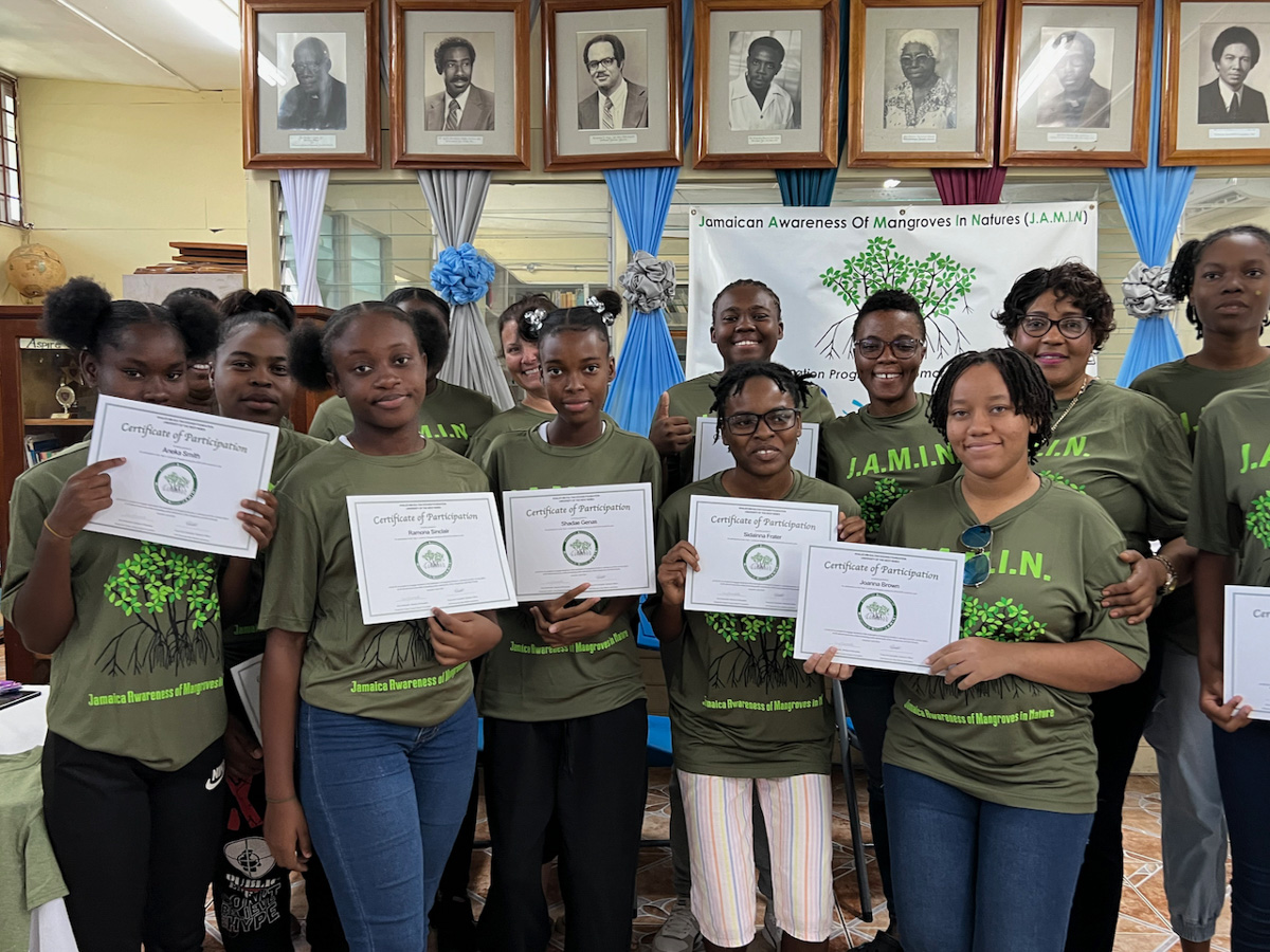 In April 2024, we had the pleasure of welcoming Juan Narvaez, Regional Sustainability Manager for Playa Hotels & Resorts, to celebrate the graduation of William Knibb Memorial High School grade 12 students from the Jamaica Awareness of Mangroves in Nature (J.A.M.I.N.) program. Juan visited to experience the program firsthand, and his inspiring speech encouraged students to continue learning about mangroves and their significance. He gave students a platform to express what they had learned and share how the program had impacted them. As Juan put it, they are dedicated to “working for a better tomorrow,” a message that resonated deeply with everyone present.